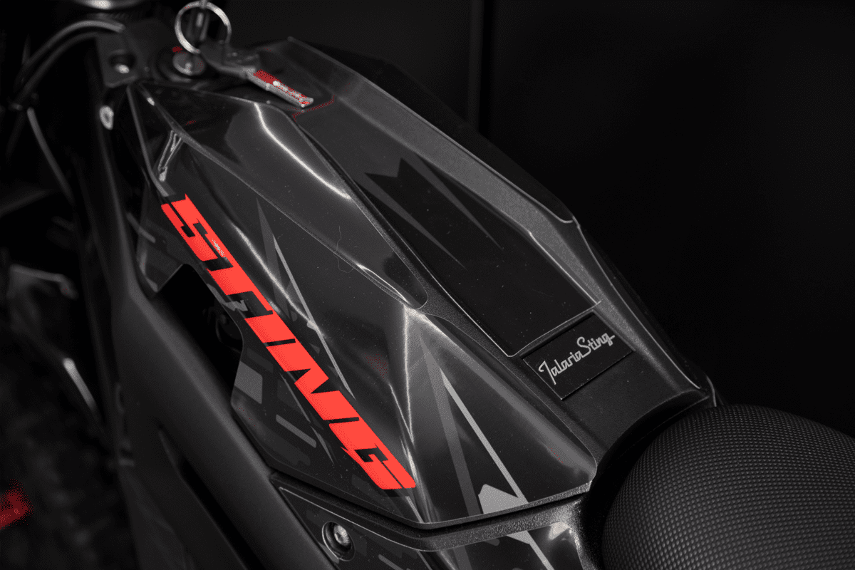 Talaria MX4, Talaria Sting R MX4 Expert features 10% peak power increase over standard MX4 – now the most powerful bike in its category. It comes with Manitou Dorado Expert adjustable front fork, improved chain guard, Black wheel spokes, High contrast OLED large display and much more!
